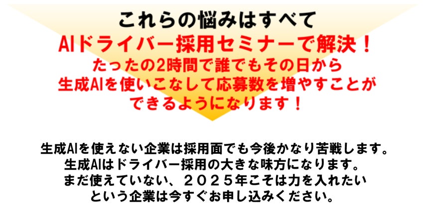 セミナー当日は同社の社長から、ChatGPTの活用方法やドライバー採用においてどれほど効果を発揮できるのかお話しいただきます。