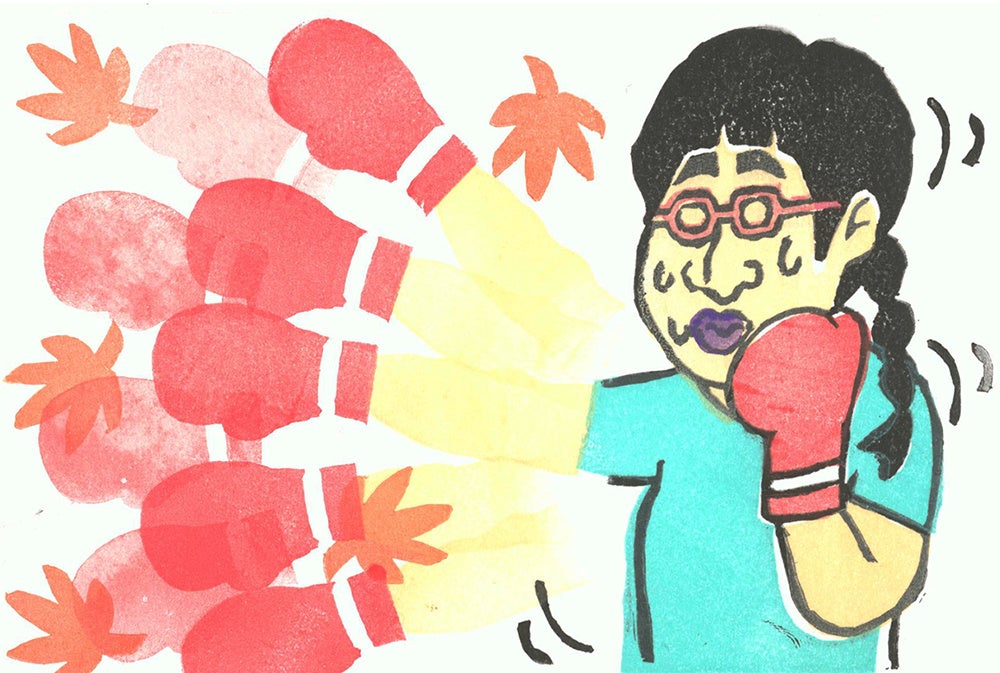 (1)色えんぴつ (2)ガラスアート (3)消しゴムはんこ (4)水彩画
