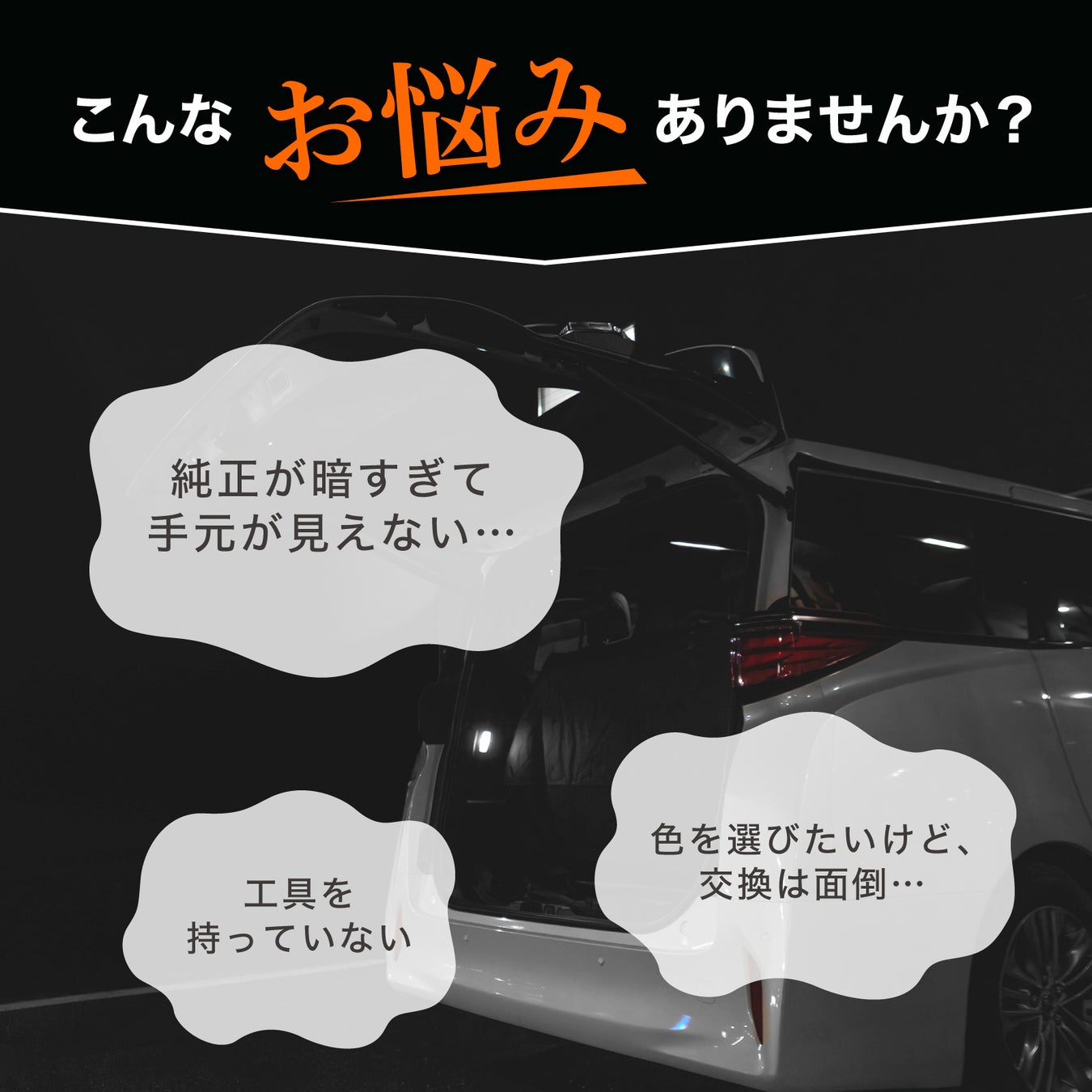 一方で、「純正ラゲッジランプが暗く、夜間の積み下ろしや荷物の探し物に不便を感じる」「色味を変えたいが、電球交換は手間がかかる」といったユーザーの声が多く寄せられていました。