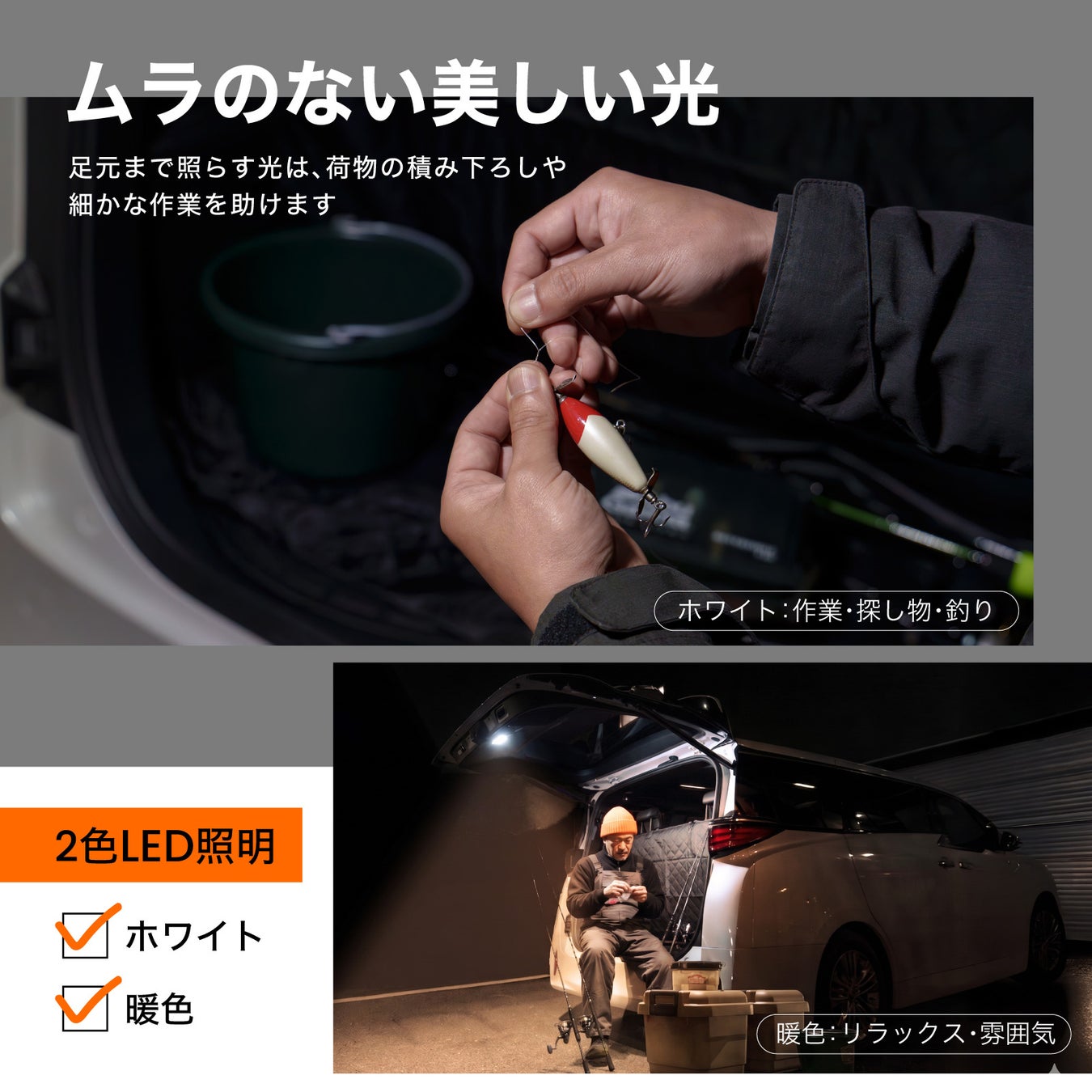 【新発売】使いやすさがラゲッジランプの全て。アルファード/ヴェルファイア40系専用 LED増設ラゲッジランプ——高輝度LED×2色切り替えで、積み下ろしから趣味シーンまで夜間の荷室を快適に照らす。