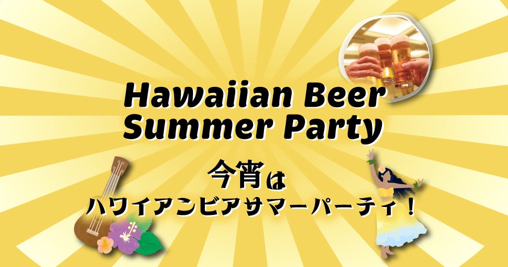 ホテルヴィスキオ尼崎が贈る夏の特別イベント「今宵はハワイアンビアサマーパーティ」。南国ハワイの雰囲気を存分に楽しめるフラダンスやウクレレの生演奏をはじめ、華やかなハワイアン料理が堪能できる一夜限りのサマーパーティです。皆さまを常夏のハワイへいざないます。