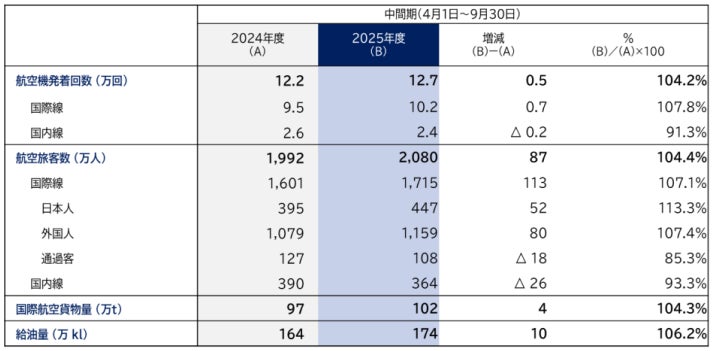 詳細については、ホームページ(https://www.narita-airport.jp/ja/company/ir/library/)に掲載の「2025年度(2026年3月期)中間決算説明資料」をご覧ください。