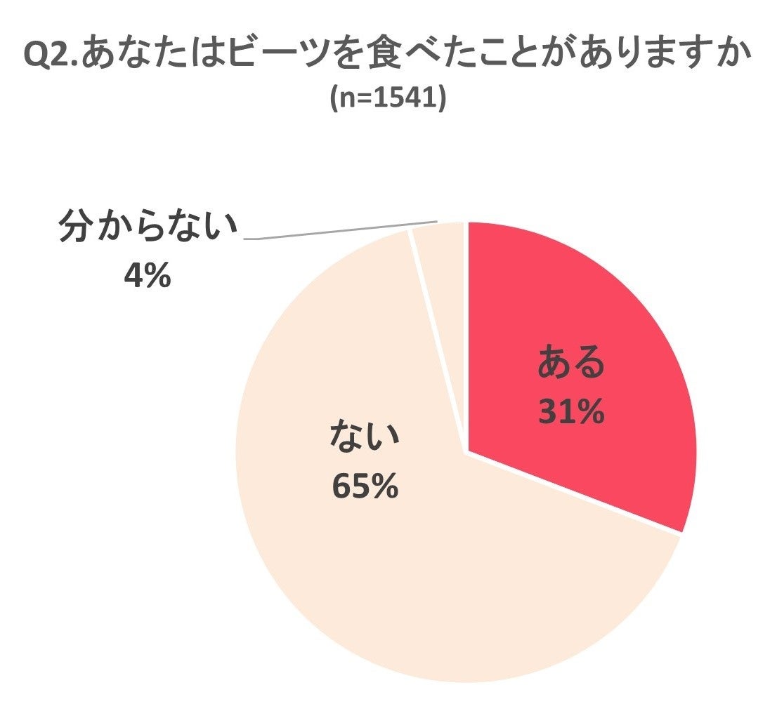 「ビーツを知っているか」と尋ねたところ、61%が「知っている」と回答(Q1)した一方でビーツを食べたことがあるのはわずか31%で(Q2)でした。さらにビーツを食べたことがある人に「ビーツを自宅で料理するか」尋ねたところ、自宅で料理をする人は47%にとどまることから(Q3)、認知はされているもののビーツがまだ身近な野菜ではないことが明らかになりました。