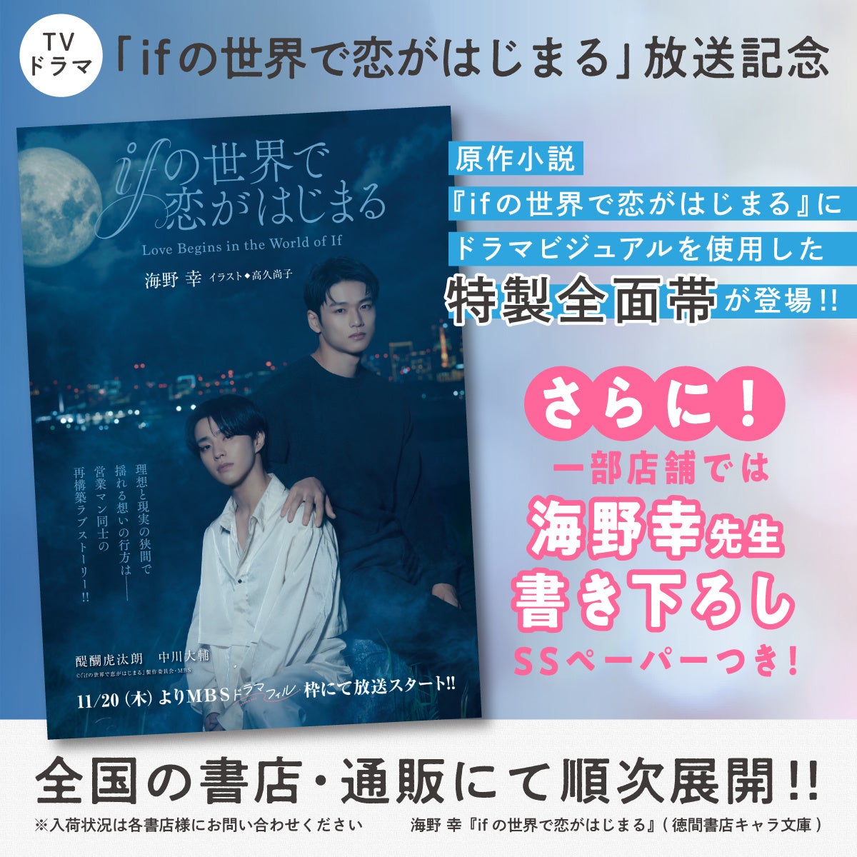 TVドラマ「ifの世界で恋がはじまる」放送記念! 原作小説にドラマポスタービジュアルを使用した特製全面帯を全国書店で展開!! さらに一部店舗にて海野 幸先生書き下ろし番外編ペーパー配布決定!!
