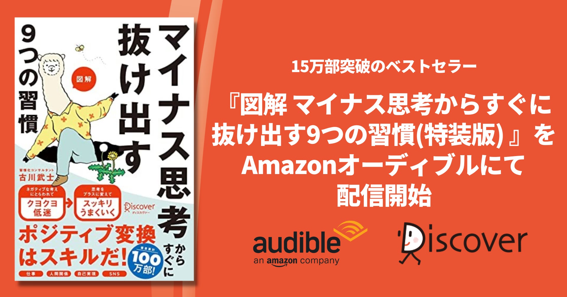 株式会社ディスカヴァー・トゥエンティワン(本社:東京都千代田区、取締役社長:谷口奈緒美)と世界最大級のオーディオブック及び音声コンテンツ制作・配信サービスであるAmazonオーディブル(以下、オーディブル)は、2022年9月2日に『図解 マイナス思考からすぐに抜け出す9つの習慣(特装版)』(古川武士・著)のオーディオブックを、オーディブルにて発売しました。