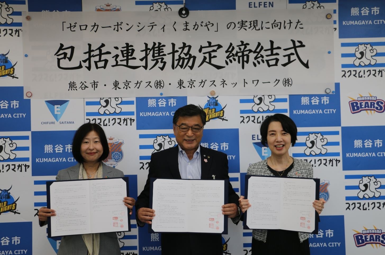 (左から 東京ガスネットワーク埼玉支社長:細田千恵、熊谷市長:小林哲也、東京ガス常務執行役員:小西雅子)