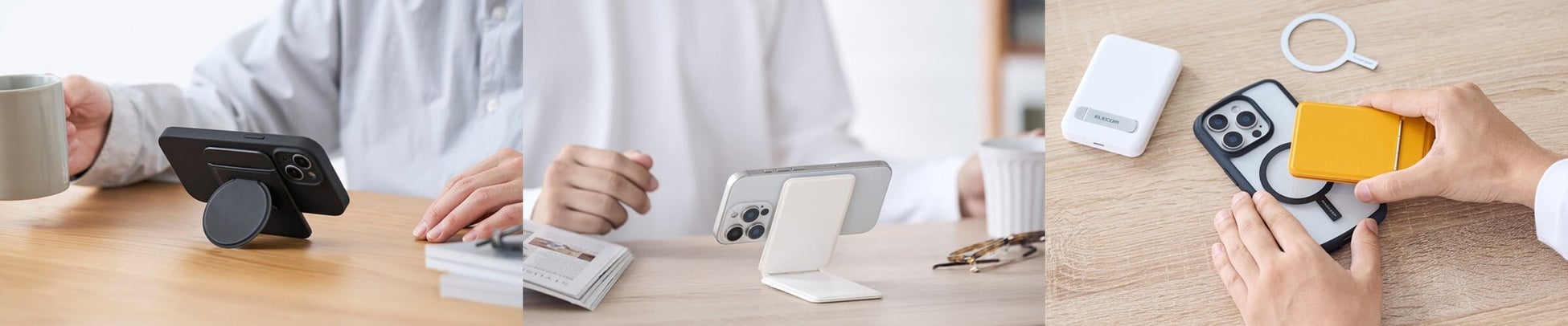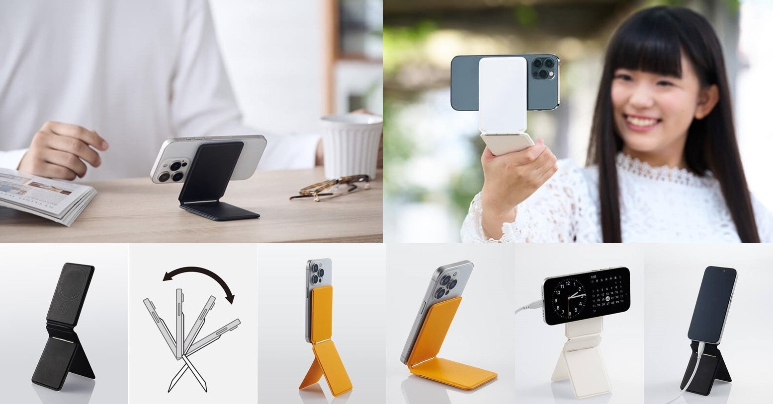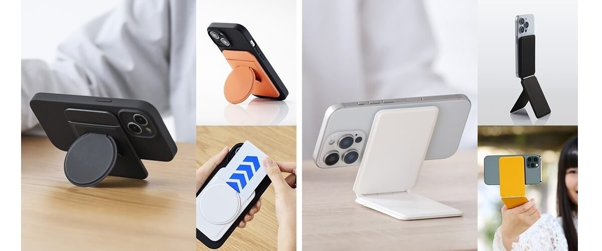 MagSafe対応で簡単着脱!薄型タイプと角度が自由に調整できるマルチスタンドタイプ、スマートフォン用マグネットスタンド 2タイプを新発売
