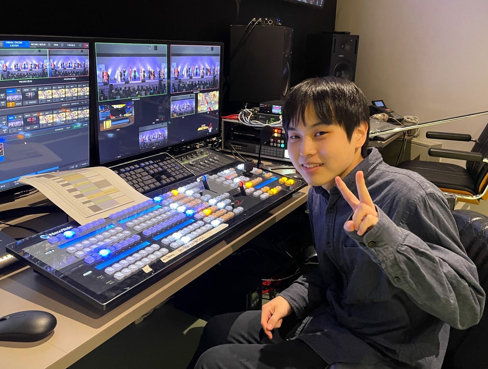 配信には「VTuberコース」の在校生もアシスタントディレクターとして参加。VTuberを活用した番組配信の裏側を、卒業生の先輩から直に学ぶことで、将来VTuber業界で働くために重要な経験となりました。