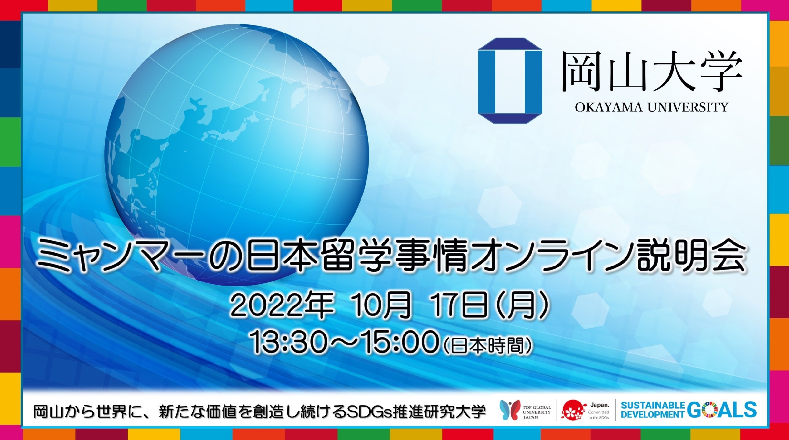 【岡山大学】ミャンマーの日本留学事情オンライン説明会〔10/17,月 オンライン〕