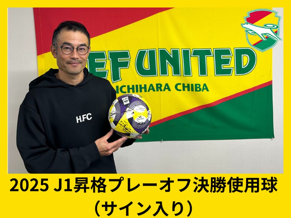 2025//12/13は、ジェフユナイテッド市原・千葉に関わる全ての皆様とっては忘れられない日になりました。「Go to J1」J1昇格を決めた記念すべき試合で実際に使用された公式試合球に、監督とベンチ入りした全選手の直筆サインが入った特別な記念品をご提供します。