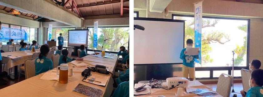 2日間で学んだ世界自然遺産の島内の海へつながる自然の大切さについて、自分たちにできることを考え、ディスカッションを進め、発表し、2日間のワークショップを終了しました。参加した奄美の女の子は「海に行くことは初めてじゃなかったけど、今回の体験で改めて奄美の海の自然の豊かさに感動しました。これからも、このきれいな海を守っていきたいです」と話していました。