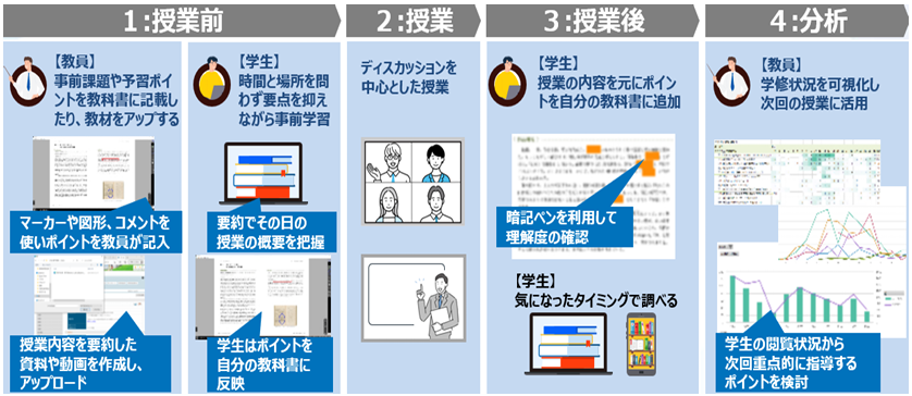 そこで三者は「教育設計図」に則り、知識や技術の習得状況を把握して、学生一人ひとりの理解度や習熟度に合わせた指導を実施することを目的に本実証事業を実施します。