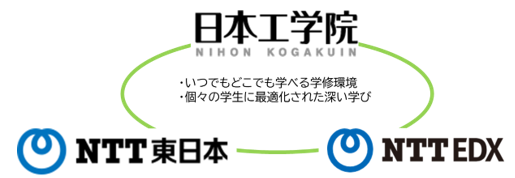 日本工学院は学生の学修効果、教員の教育支援の有効性を検証し、より多くの授業科目への展開をめざします。また、2024年度から開始するeポートフォリオ※3で学修達成度データの可視化を実現しますが、将来的にはこれらのデータとEDX UniTextから収集可能な閲覧履歴や学習時間などの学修ログを掛け合わせた学修データの収集・分析を実施します。得られた結果を教育にフィードバックするというサイクルをベースに学生一人ひとりへのきめ細やかなサポートを実現する「データ利活用教育メソッド」を確立し、「若きつくりびと」として社会を支える人材の輩出をめざします。 NTT東日本は教育分野のさらなる発展に向け、EDX UniTextに加えて高等教育機関が保有する多様なデータを掛け合わせた学修データの利活用を促進し、効果的な高等教育機関での課題解決に取り組んでまいります。NTT EDXは教育分野のさらなる進展のため、日本工学院で教科書販売を担う株式会社有隣堂とも連携し、電子教科書コンテンツの充実に取り組むとともに、EDX UniTextの有効な活用や展開、普及に継続的に取り組みます。
