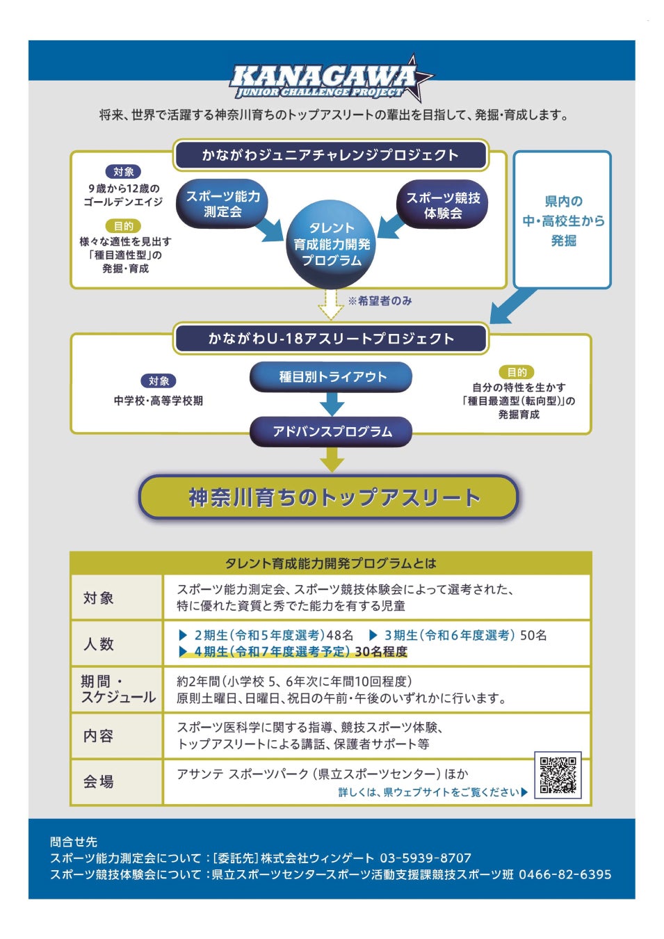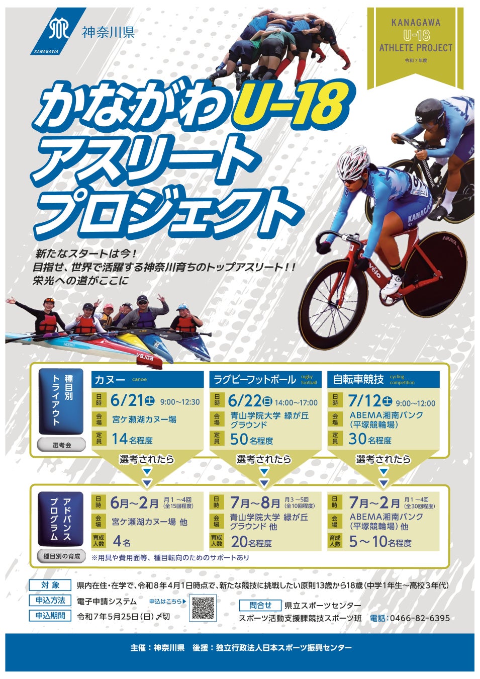 「かながわジュニアチャレンジプロジェクト」、「かながわU-18アスリートプロジェクト」を実施します!