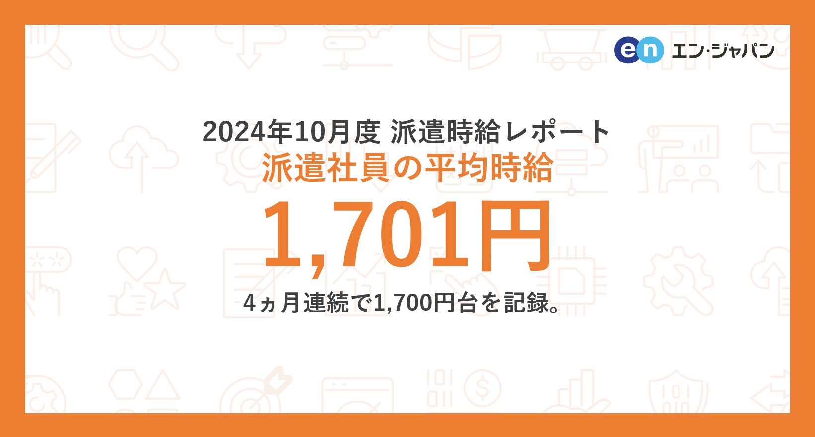 2024年10月度 派遣社員の平均時給は1,701円 4ヵ月連続で1,700円台を記録。