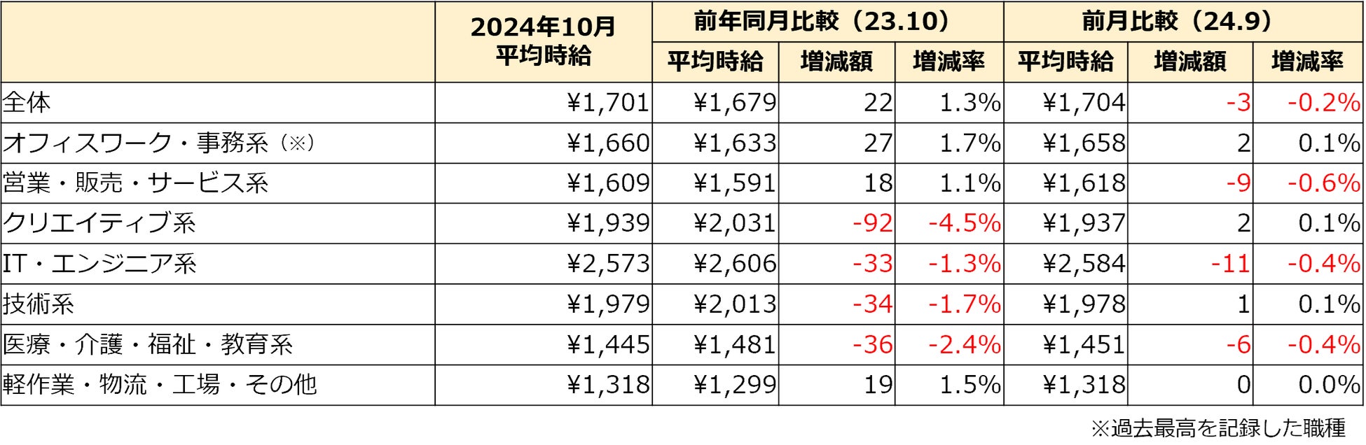 10月度の三大都市圏 職種別平均時給は、【オフィスワーク・事務系】が過去最高に。