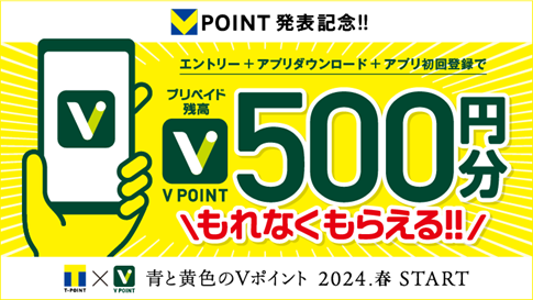 【Vポイント発表記念キャンペーン】条件達成でもれなく500円相当の特典プレゼント!