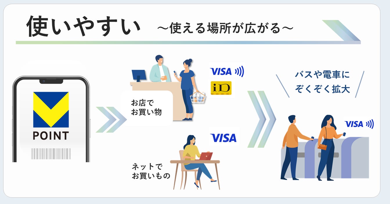 『Vポイント』は、これまでよりも多くの生活シーンで貯めて・使える、特定の経済圏に縛られないポイントとして、2024年春よりサービスを開始する予定です。新たにご利用されるお客さまにとってはもちろん、既存のTポイント・Vポイントをご利用のお客さまにとっても、これまでと同様のご利用方法に加えて、さらに便利にご利用いただけるポイントサービスとなります。さらに、お客さまにとって魅力的なポイントへ進化させるとともに、Tポイント提携先への送客強化にもつなげてまいります。