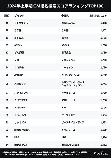 ※関連リンク 「2024年上半期 CM指名検索スコアランキング 1〜100位」