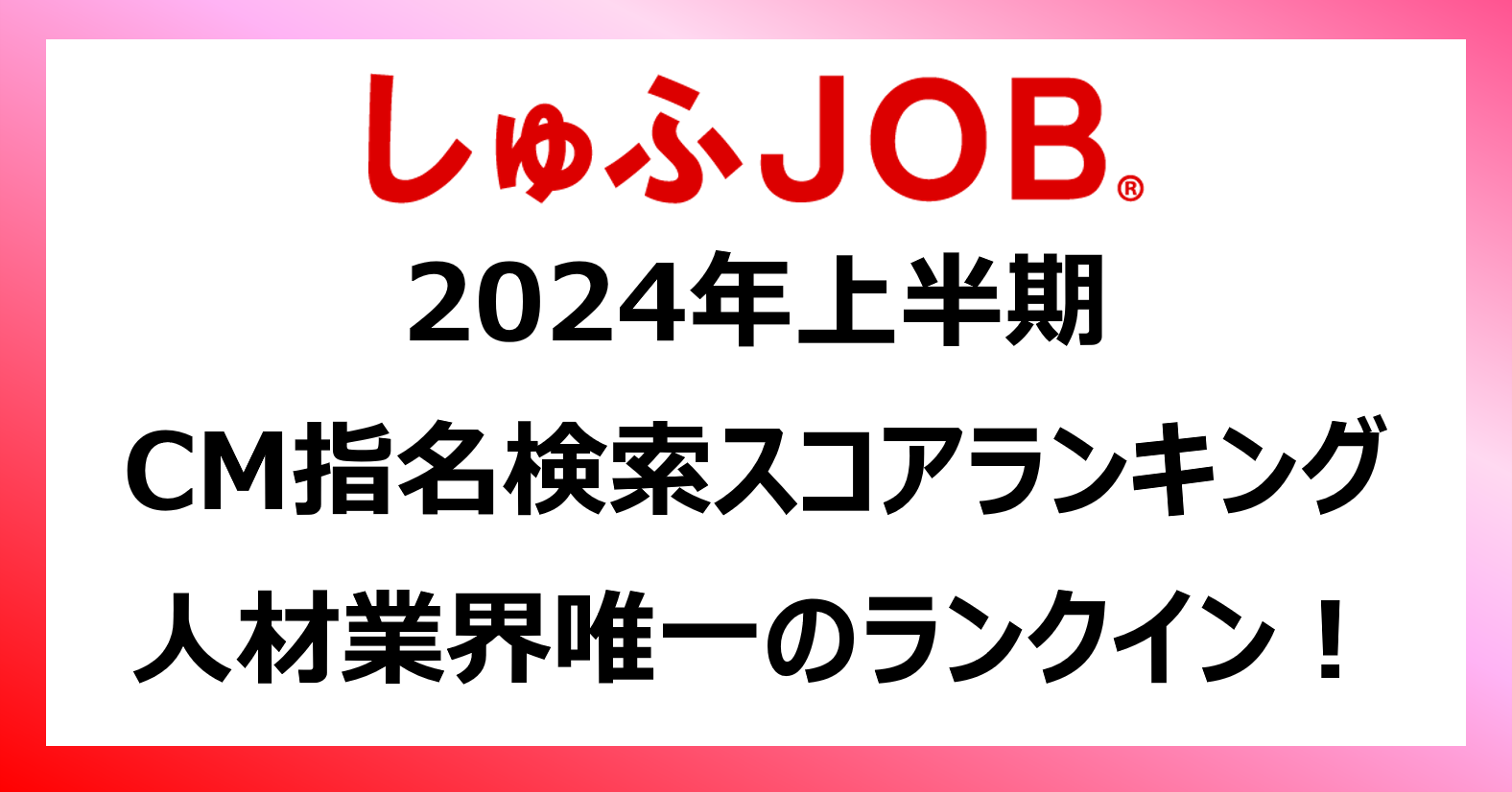 「しゅふJOB」テレビCMがノバセル社発表『2024年上半期 CM指名検索スコアランキング』に人材サービス業界唯一のランクイン!