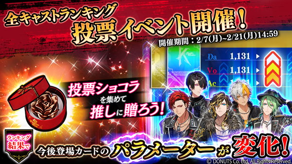 2月7日(月)株式会社DONUTSは、『ブラックスター -Theater Starless-』のバレンタインイベントが開演したことをお知らせいたします。