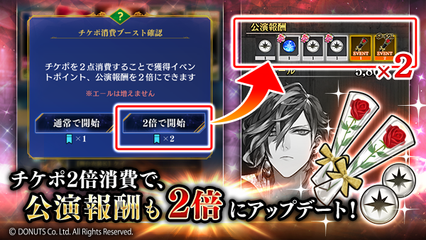 ・公演時に対象キャストのカードのスコアにボーナス(公演3回)