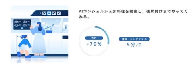 ▶キッチン:AIコンシェルジュが料理を提案し、後片付けまでやってくれる。