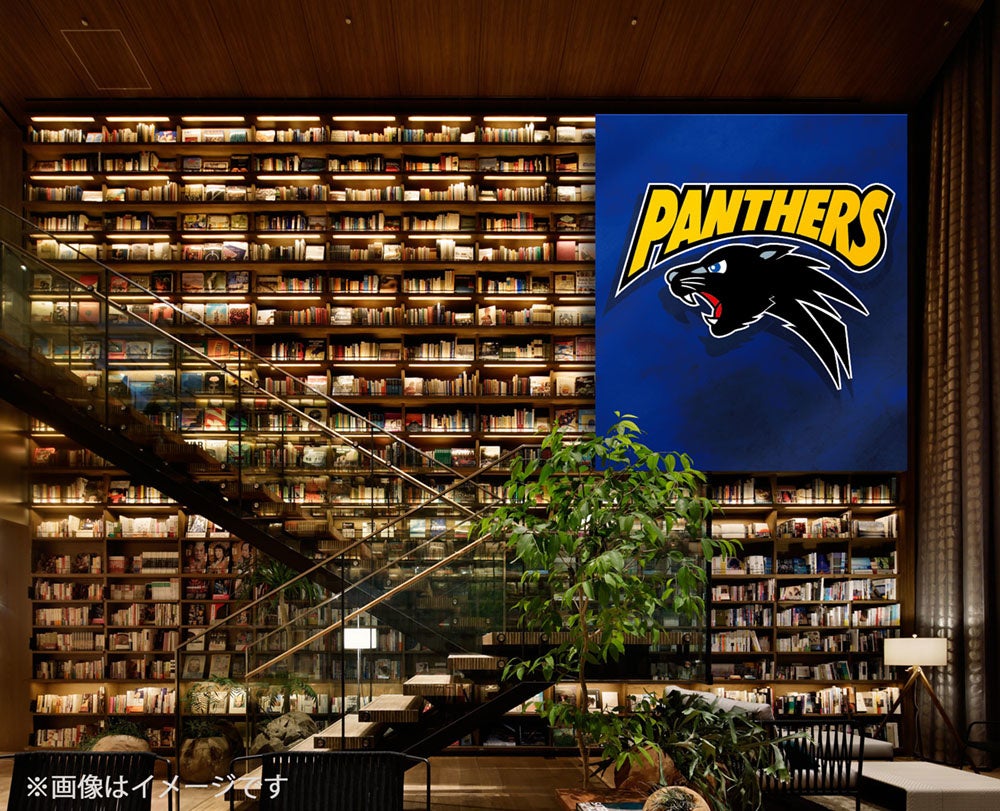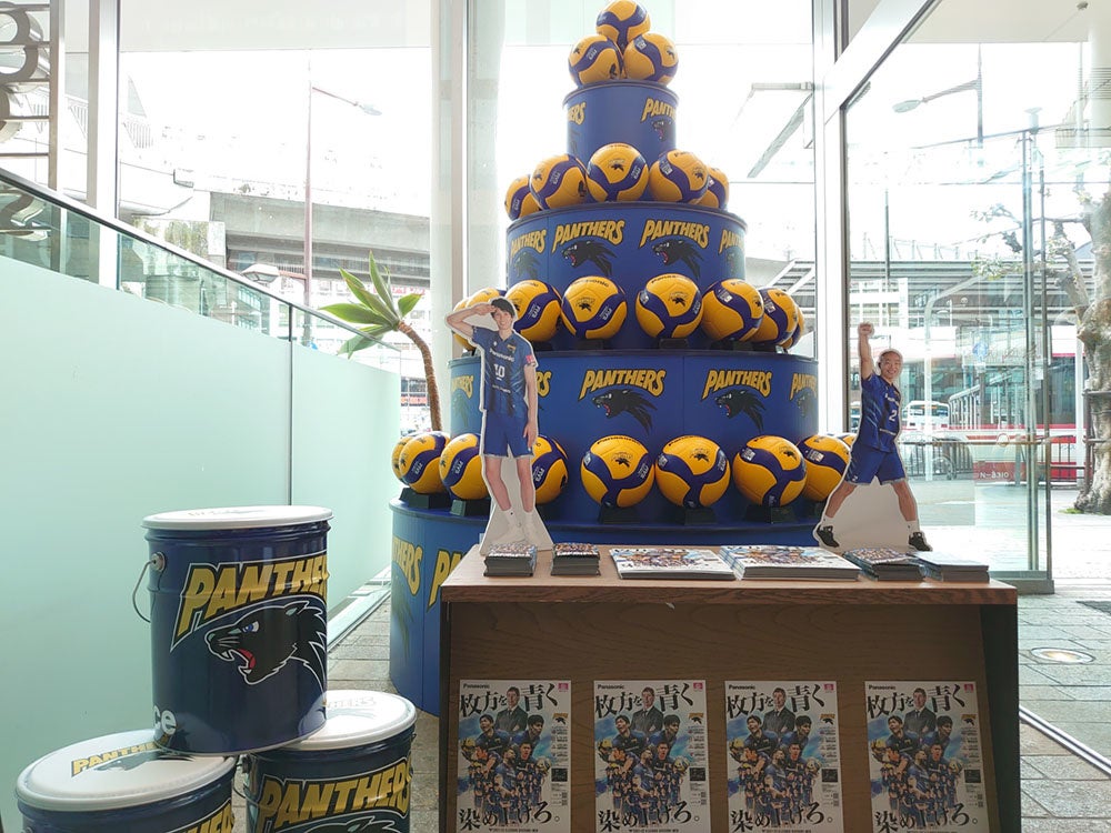 熱戦の映像、各選手のユニホームや等身大パネルなどが展示される他、7mの本棚がパンサーズブルーに染まる!巨大フラッグが4Fイベントスペースに登場