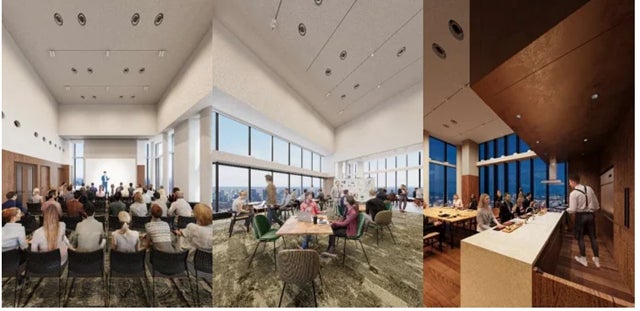 7.5mの天井高と、全面ガラス張りの眺望を活かした開放的な雰囲気のホールです。地上約160mから眼下に広がる街を見渡しながら、セミナー、イベント、交流会や撮影など、さまざまな用途で利用できます。また、キッチン付きのスタジオでは、食に関連したイベントの開催も可能です。4月18日より、6ヶ月先までの予約受付を開始します。