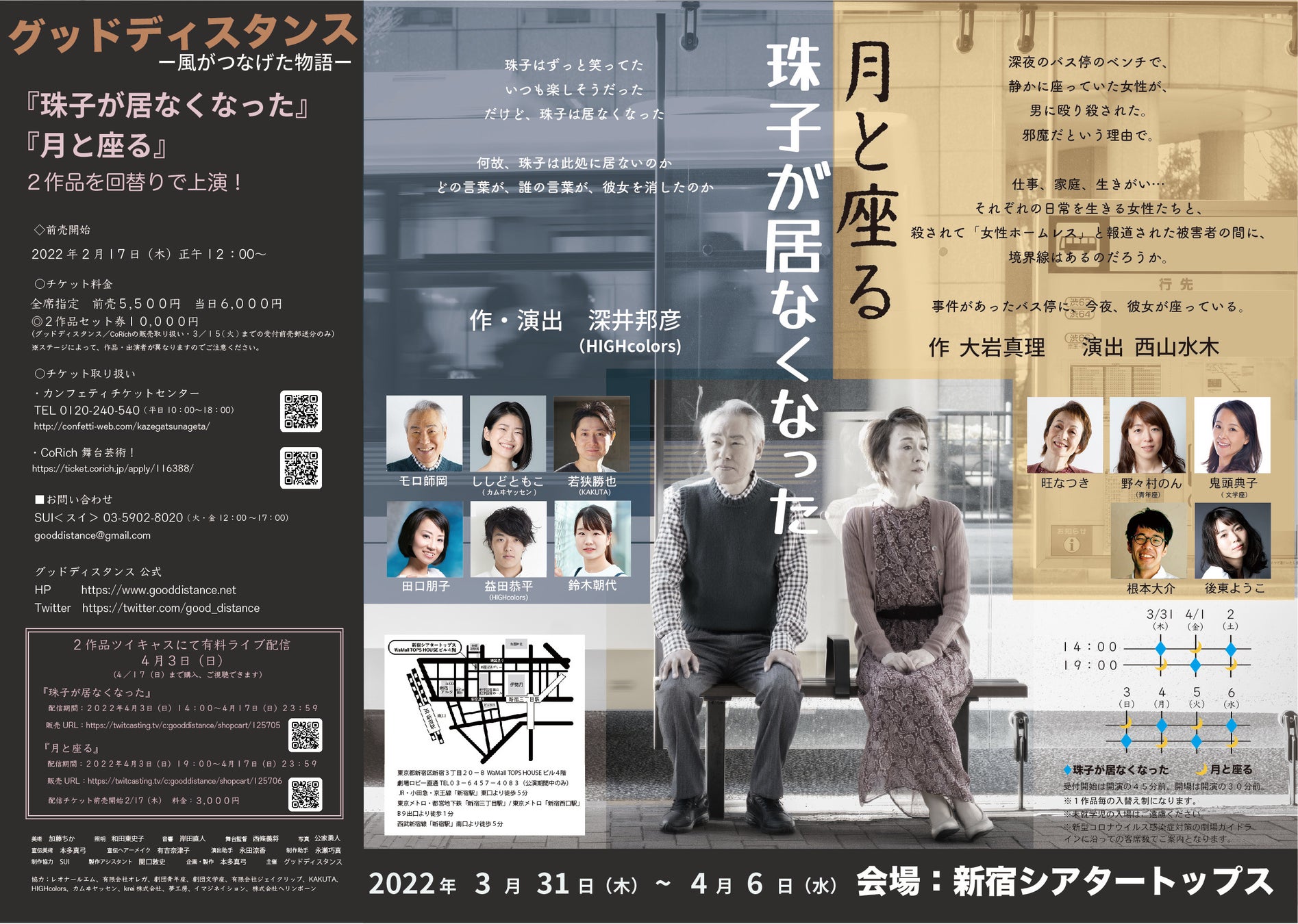 グッドディスタンスでは欠かせない二人の作家 深井邦彦作品では【誹謗中傷】を、大岩真理作品では【女性の生活の不確かさ】を繊細、且つ濃密に描く90分。
