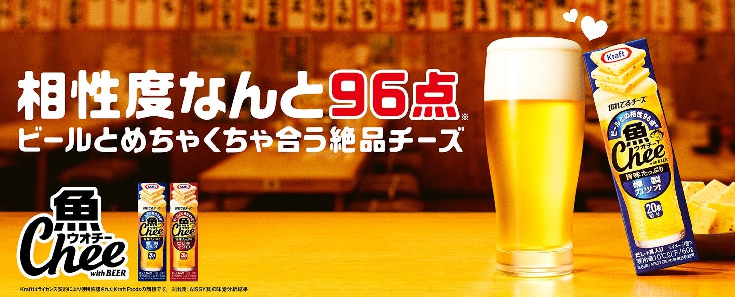 ビールとの相性96点 ※1ビールと合わせるために生まれたひとくちサイズの切れてるチーズ「クラフト 魚Chee(ウオチー)」発売1ヶ月で100万個突破(計画比240%超 ※2の好調!