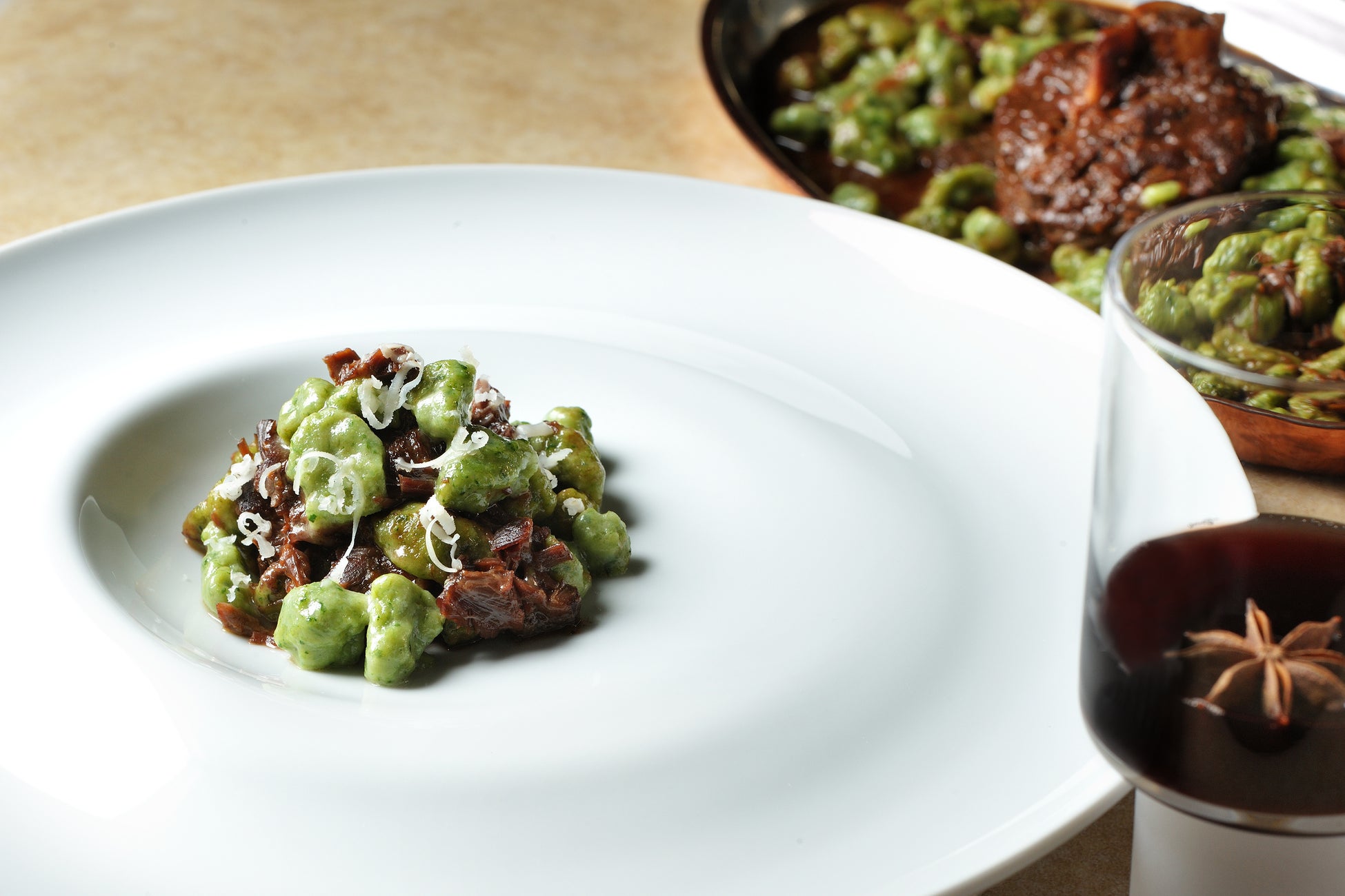 パスタ「鹿のスティンコのスペッツレ」×エスプレッソ、葡萄、スパイス