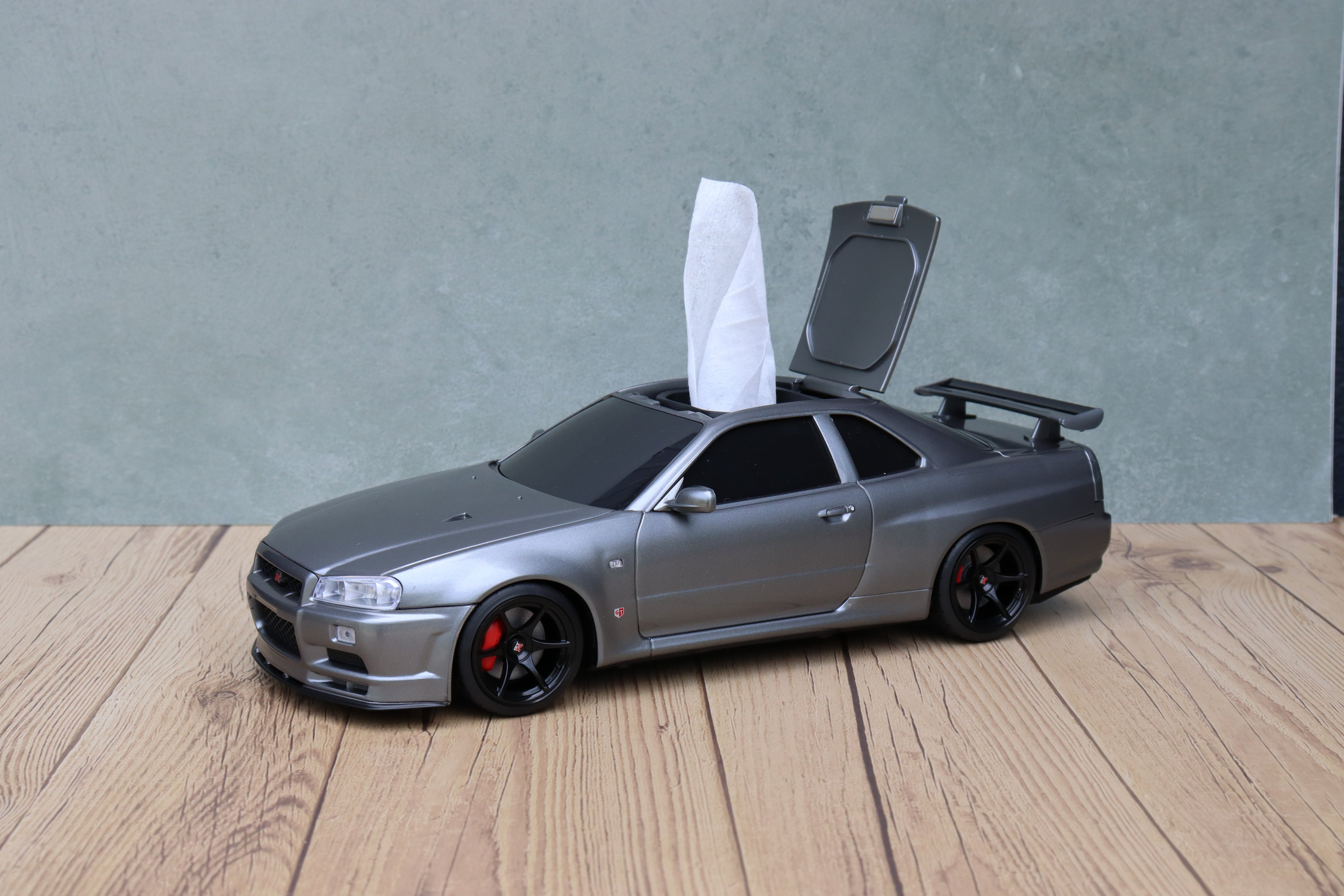 「日産スカイラインGT-R(BNR34)」型ウェットティッシュケースの新色「ガンメタリックシルバー」が丹波屋栃木くらしっくで取扱い開始となりました。