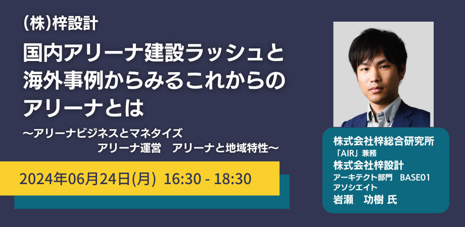 【JPIセミナー】(株)梓設計「国内アリーナ建設ラッシュと海外事例からみるこれからのアリーナとは」6月24日(月)開催