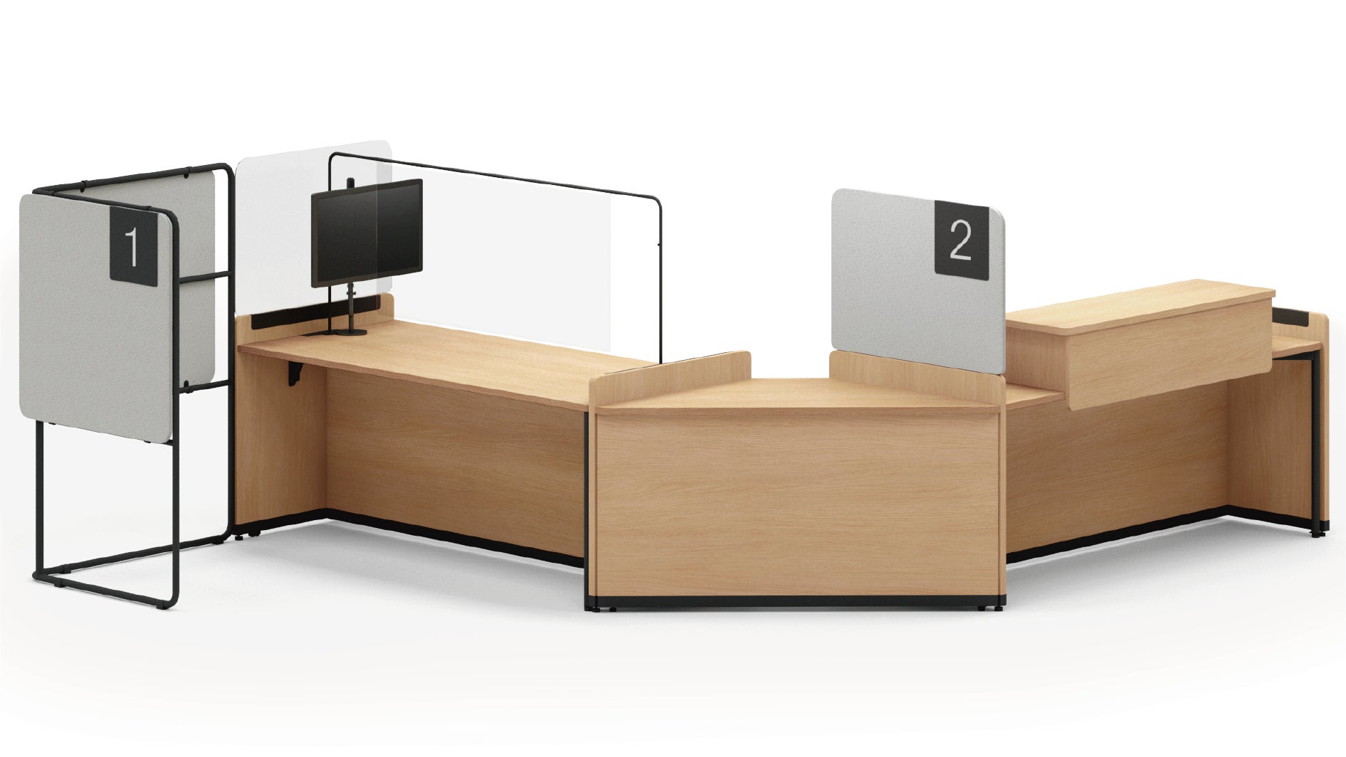 自治体DXによる庁舎の変化に柔軟に対応するカウンターテーブルです。対面式の窓口カウンターから相談や会議のためのテーブルへと変化します。パーツを組み替えることで、さまざまな用途やレイアウトに対応できます。