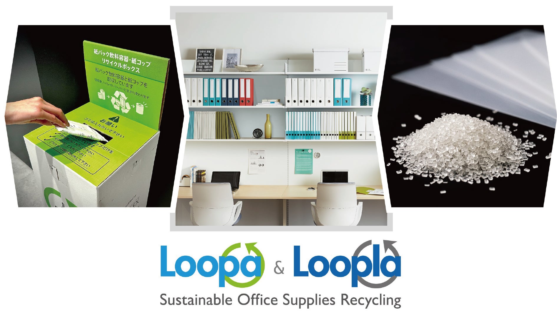Loopaは紙コップ、紙パック、機密文書などの「オフィスから生まれる紙資源」を、Looplaはクリヤーホルダーなどの「オフィスから生まれるプラスチック資源」を回収し、再生した商品を販売するリサイクルサービスです。