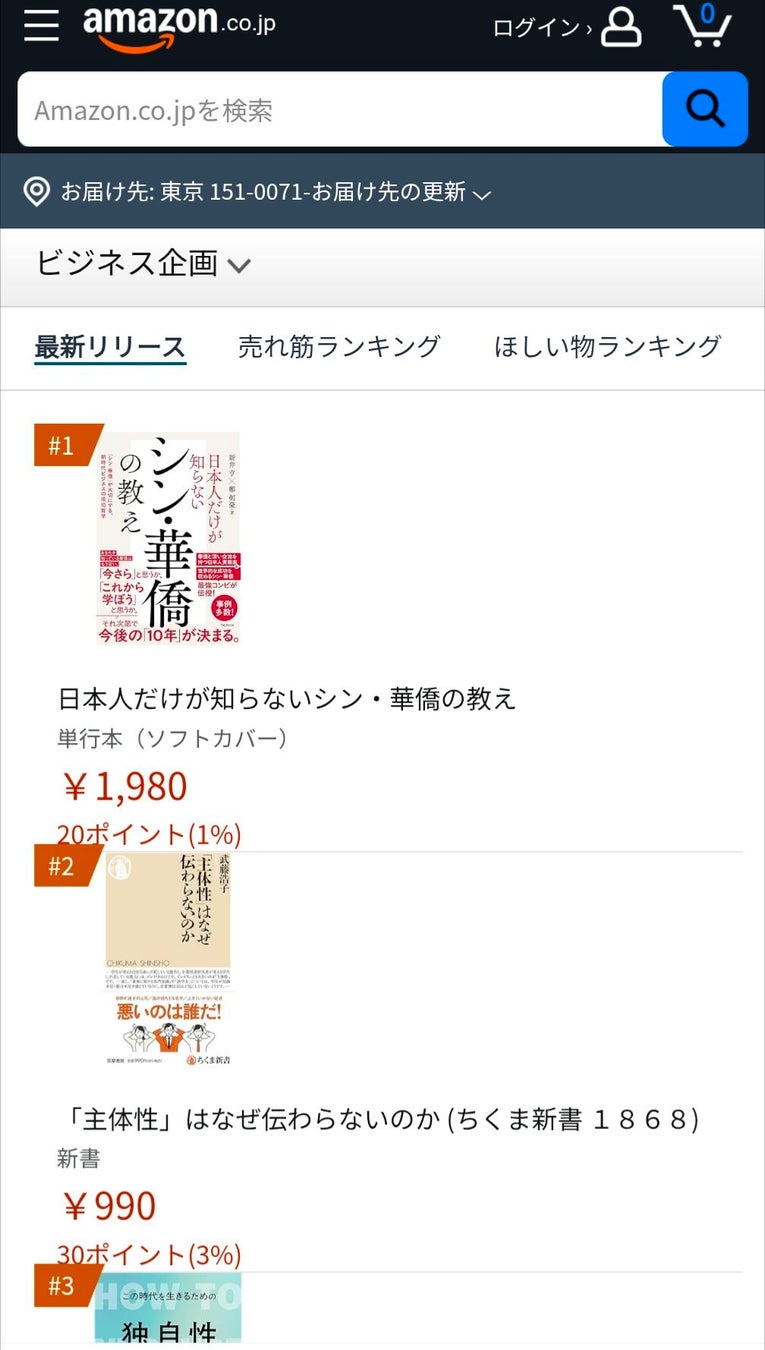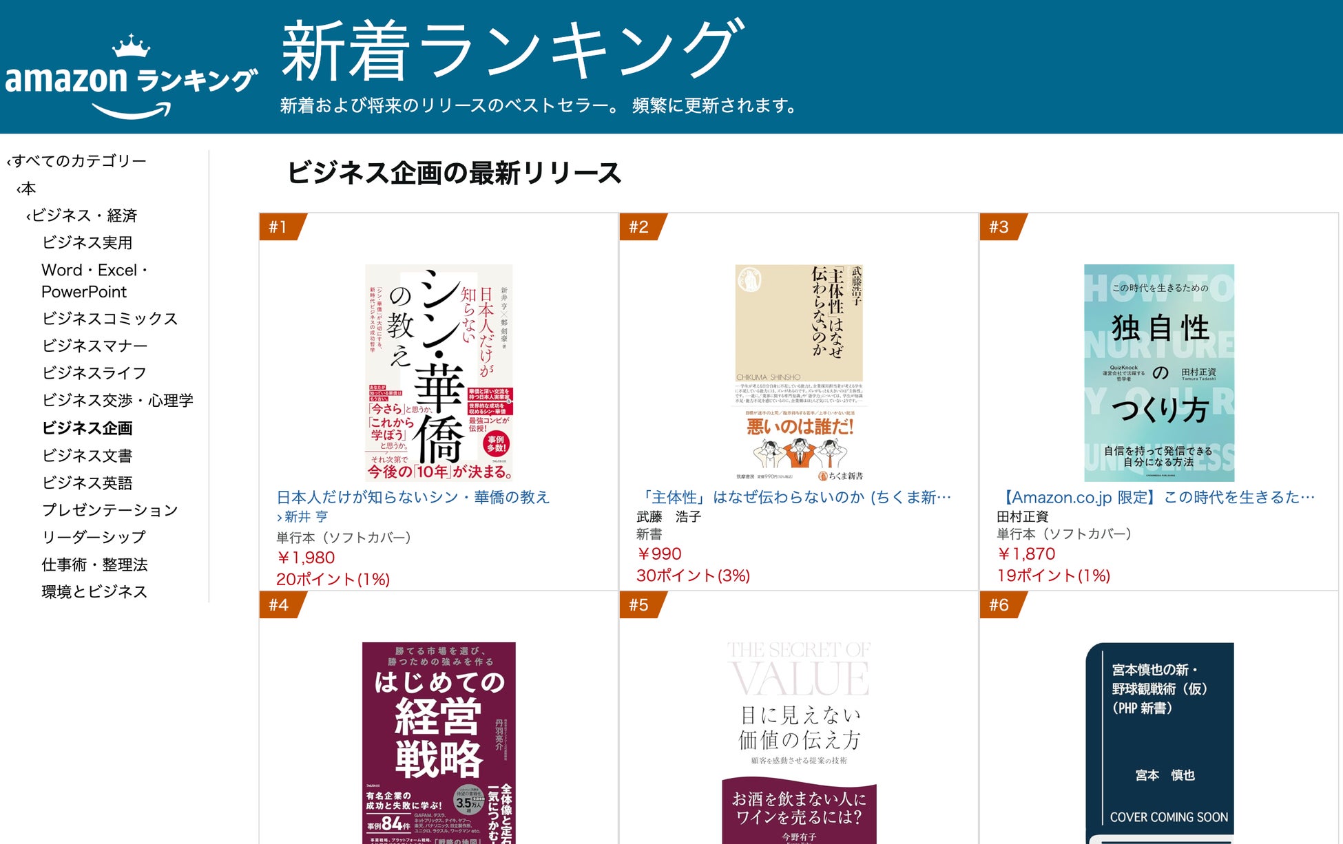 「日本人だけが知らないシン・華僑の教え」がAmazonにて予約注文ランキング1位を獲得いたしました。