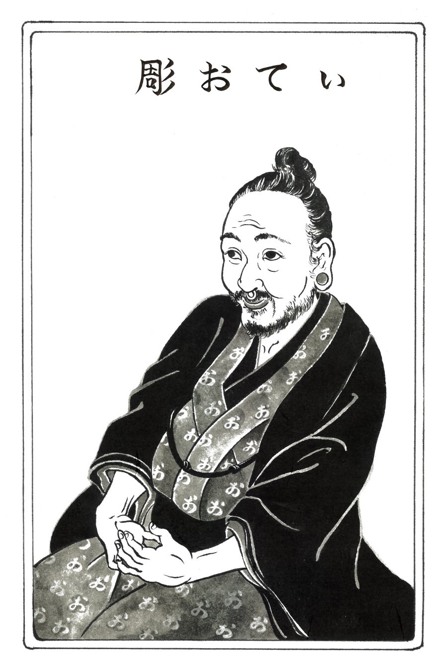 文身師(タトゥーアーティスト)・画家として世界中から支持を得ているOTは、日本の伝統的な様式を汲んだ絵画を吟味、研究し、その慣わしを大きく変容させることなく、現代に当てはまる題材を用いたオリジナルな作品を描いています。近年は北斎漫画のオマージュとして描き始めたシリーズを『おてぃ漫画』と題し、これまでに第4巻まで画集を出版しています。
