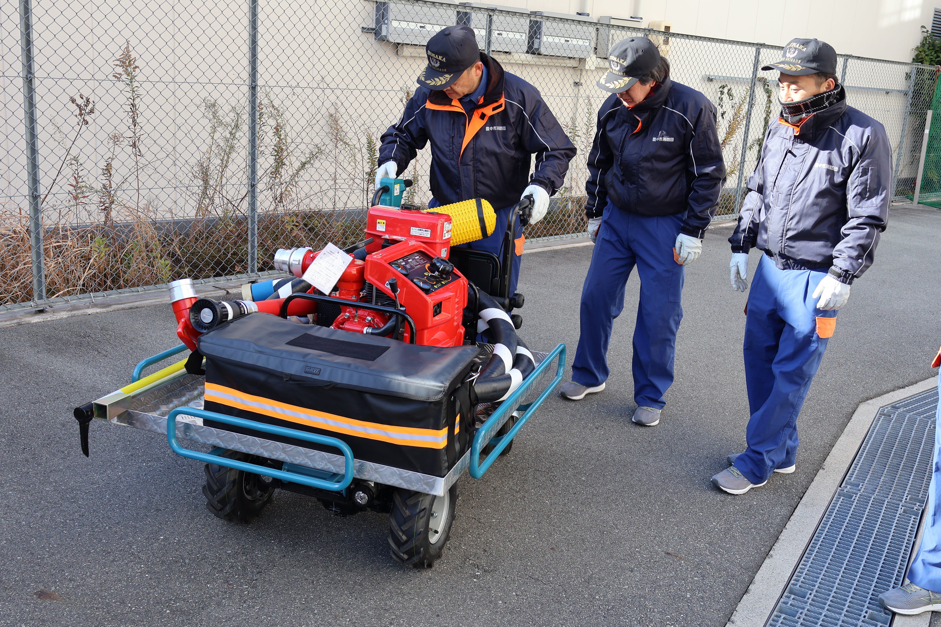 豊中市は、地域防災を担う消防団の災害対応力を強化するため、小型動力ポンプ更新に合わせ、電動台車付き小型動力ポンプ11台を導入しました。これにより従来の「人力による搬送」を前提とした装備から、少人数でも機動的に活動できる体制へと転換します。