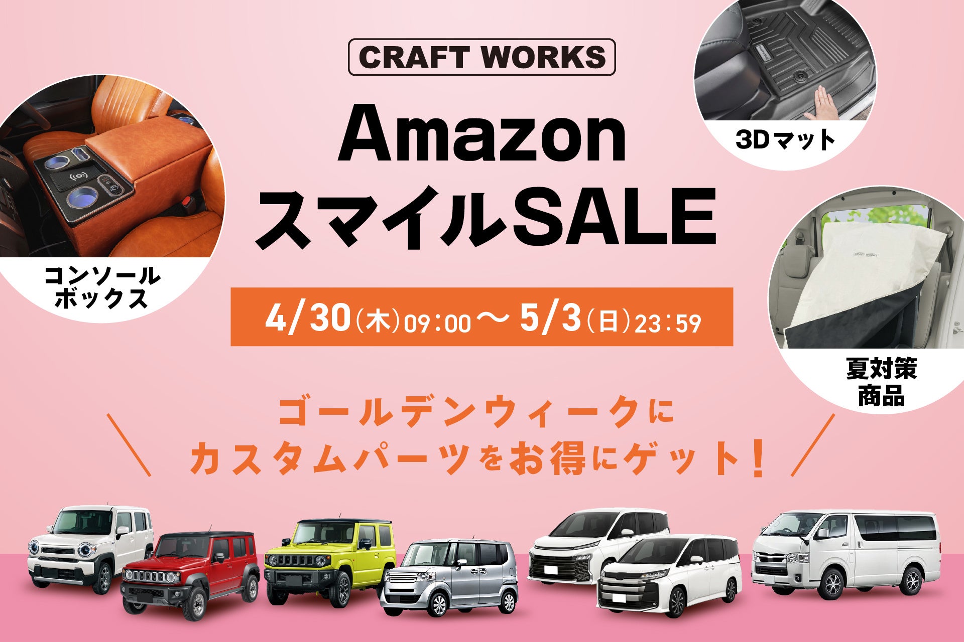ゴールデンウィークは絶好のチャンス!ジムニー乗りに愛される「CRAFT WORKS」が挑む車内の夏対策。4/30(木)よりAmazonスマイルSALEにて、夏を涼しく過ごす厳選アイテムを特別価格で販売