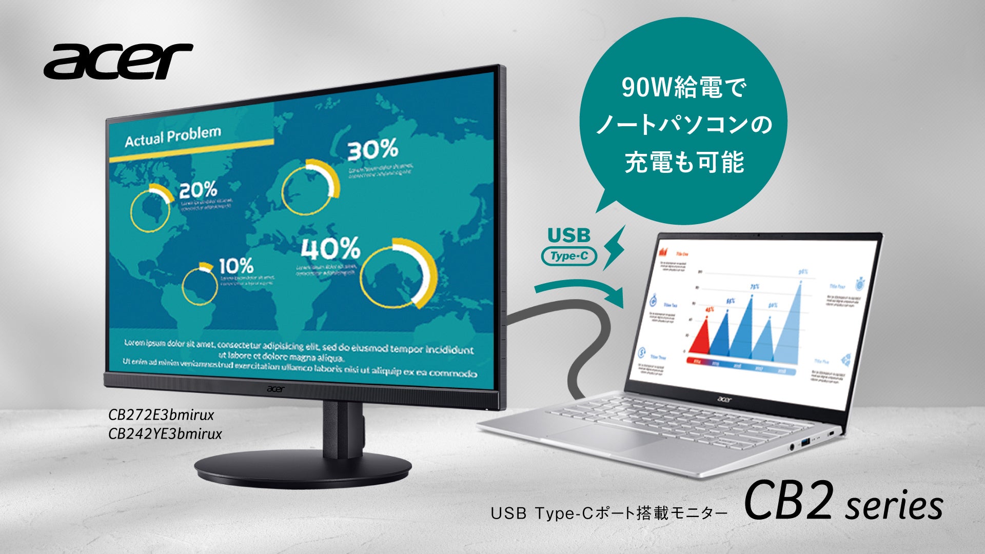 90W給電対応のUSB Type-Cポート搭載だからケーブル1本ですっきり接続!スタンダードモニターAcer CB2シリーズから27インチと23.8インチの2製品を発売!