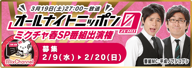 - 「オールナイトニッポン0(ZERO) ミクチャ春SP 番組出演権」イベント概要