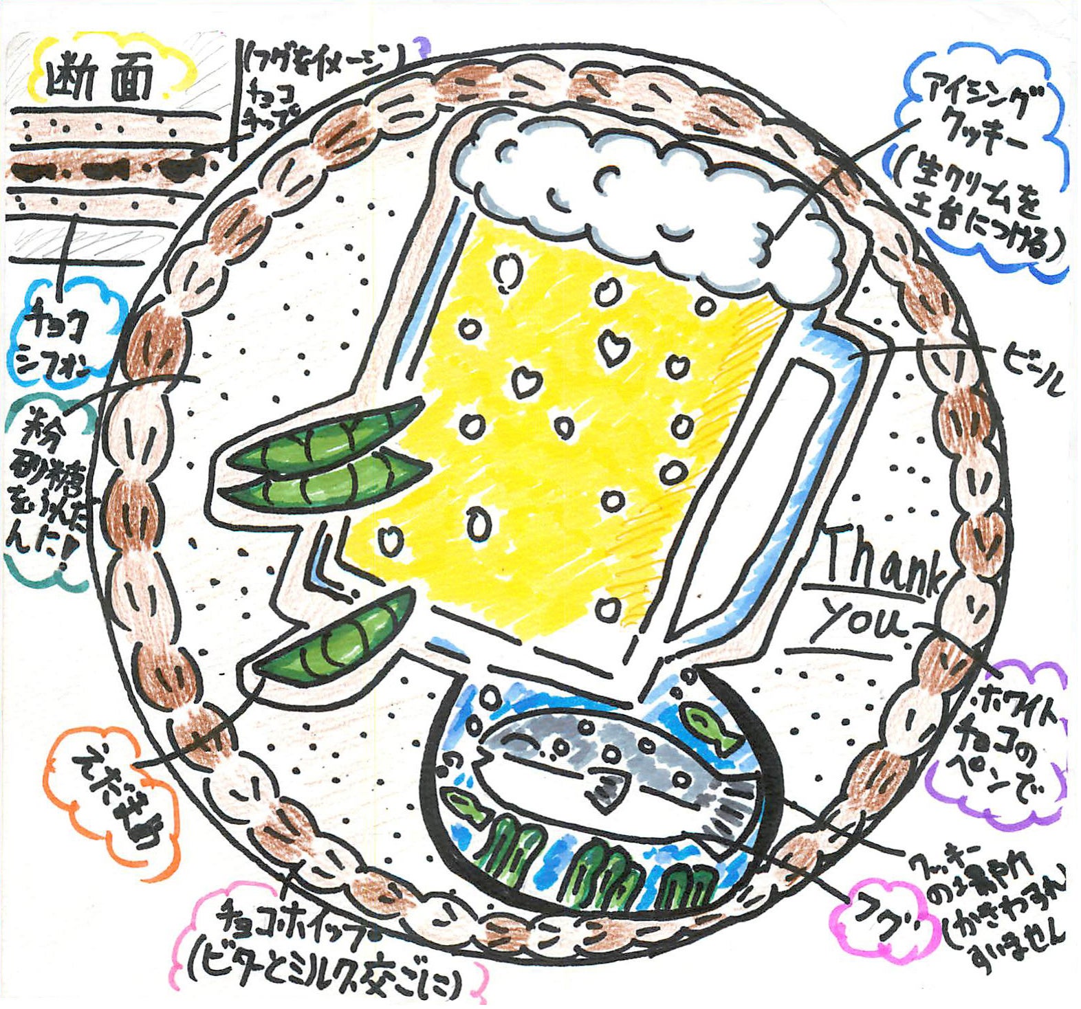 - エントリーNo.4 「ビールと一緒におつまみどうぞ!! 笑う角には「フグ」来たるケーキ! オグンシェ ロラ さん(12さい・千葉県)