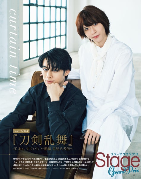 半年以上は一緒にいると思う、と語ったお二人の関係性が垣間見えるカットは必見。キャスト間のエピソード、江6振りによる新作公演についての意気込みがうかがえるインタビューになっている。