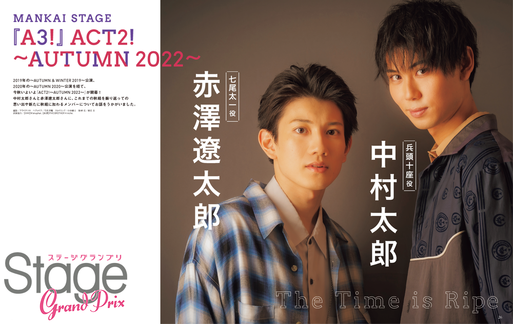 MANKAI STAGE『A3!』ACT2! ~AUTUMN 2022~特集には、中村太郎さん&赤澤遼太郎さんが登場。公演を重ねるごとに『エーステ』やキャストへの思いが強くなっているというお二人。昨年末に開催された『トルライ』(MANKAI STAGE『A3!』Troupe LIVE~AUTUMN 2021~)のお話、お互いの第一印象から現在までの変化、そして11月から始まるACT2!について余すことなく語ってくれた。