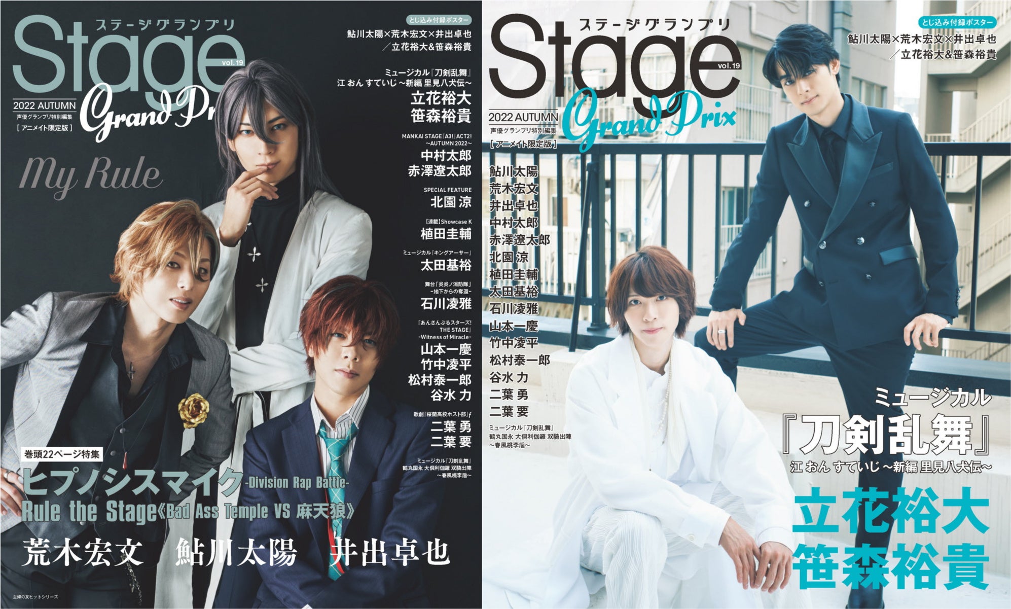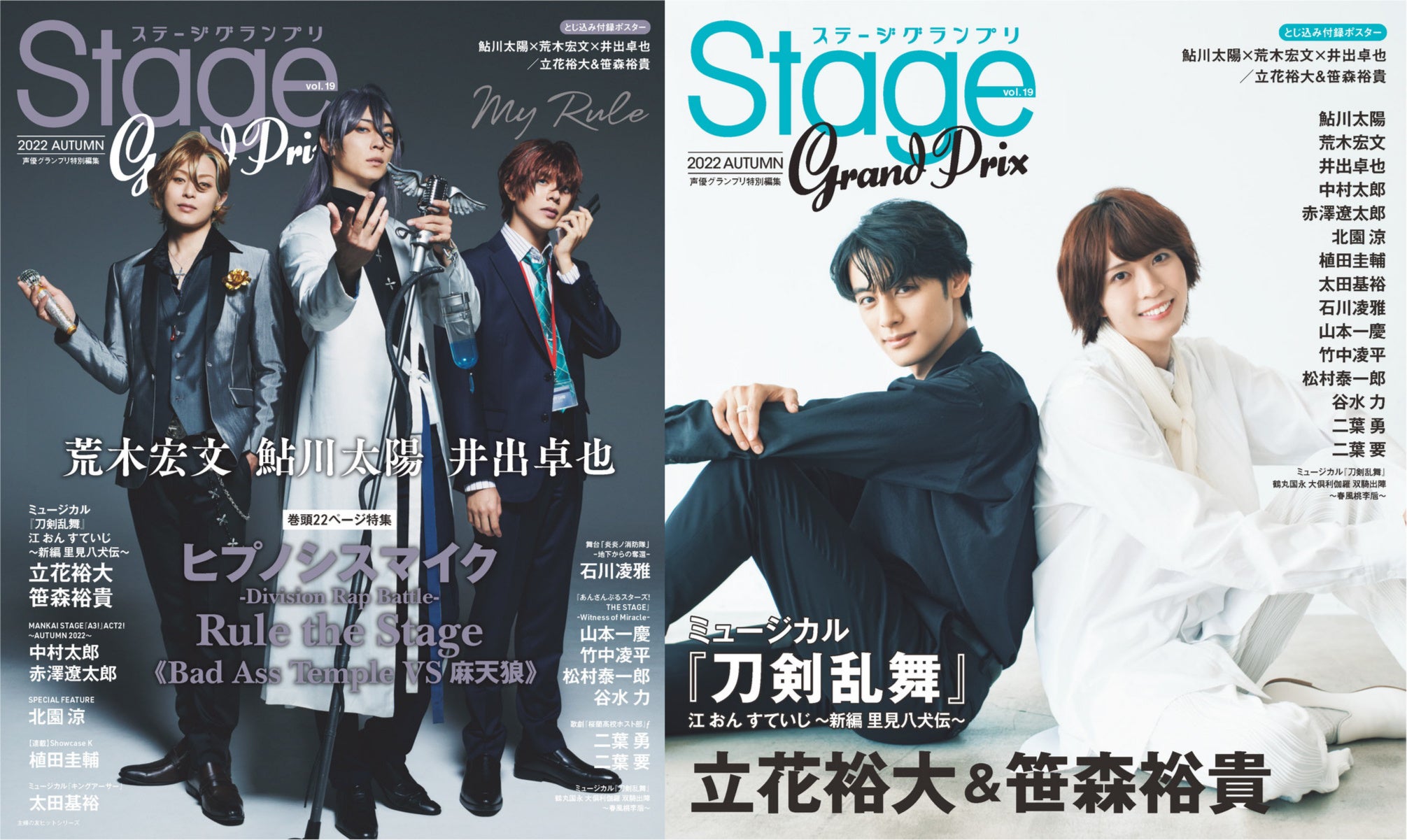 表紙はヒプステ《Bad Ass Temple VS 麻天狼》から鮎川太陽×荒木宏文×井出卓也/裏表紙はミュージカル『刀剣乱舞』から立花裕大&笹森裕貴!『ステージグランプリ vol.19』本日発売!