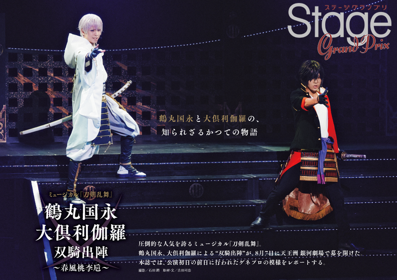 ミュージカル『刀剣乱舞』 鶴丸国永 大倶利伽羅 双騎出陣 ~春風桃李巵~のステージレポートを掲載。本誌単独のカットとともに約2時間40分の公演の模様を振り返る。