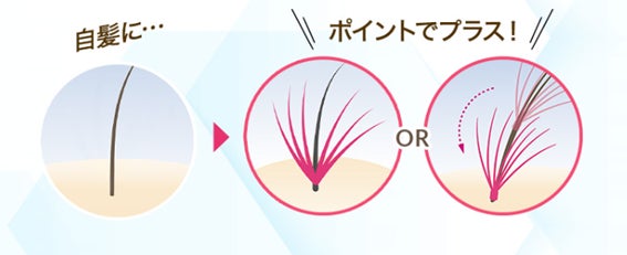 自髪1本1本に2~6本の部材を結着する商品です。気になる部分をさりげなく自然に増やします。2本/4本/6本の3種類をご用意しています。(今回のキャンペーンでは6本部材のみが対象)