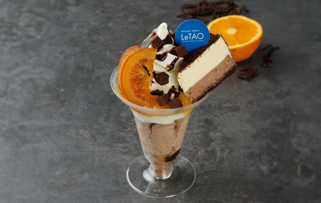 軽やかでふわもこなチョコムースと、すっきりと酸味のある爽やかなオレンジソースを重ね、ルタオで人気のカカオ香るチーズケーキ「ショコラドゥーブル」を飾った冬限定の贅沢なパルフェ。