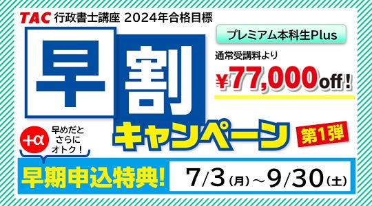 【行政書士】余裕ある学習スタートで2024年度合格を目指すコースが7月より開講!今なら『早割キャンペーン』+『早期申込特典』付き!